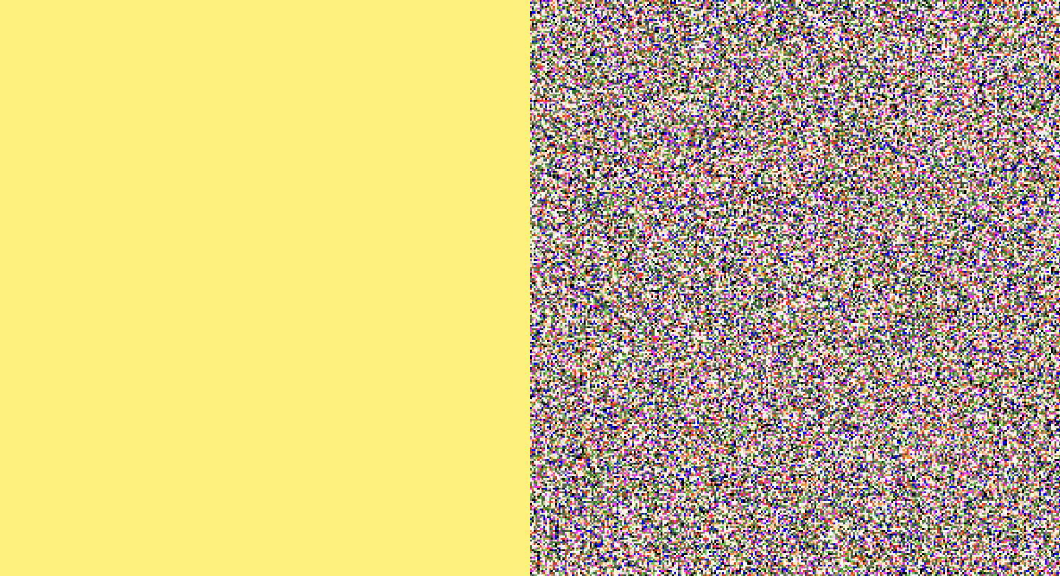 Now intuitively, one can say that the first image has little to no information. . . it’s just yellow. Whereas, the second image has a lot going on; multiple colors, all dispersed in a random manner (a lot of information?). Let’s take another example.